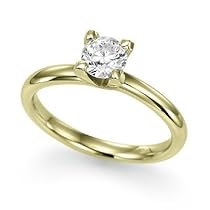 This 14k gold diamond ring is prong set with 1 round diamond. The total diamond weight is 0.50 carats. The diamond is HI color and I1-I2 clarity.