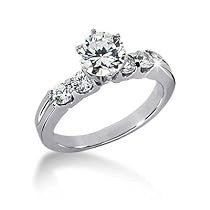 This dazzling Diamond Engagement Ring carries a total weight of 1.10 carats. This extravagant beauty brims with brilliance the diamond is I1-I2 clarity and HI in color. All the Diamonds are Natural giving fire and brilliancy at every movement. Set in Solid 14kt White Gold. Center: 1 round-brilliant-shape weighting 0.55cts H-I in color and I1 in clarity. Side Stones:4 round-brilliant-shape weighting 0.55cts H-I in color and I1 in clarity.This ring ships with a deluxe jewelry box and a certificate of authenticity. We offer FREE resizing on all our fine diamond rings collections. Contact us at sales@amcordesign.com with the ASIN number and we will resize it free of charge.[]